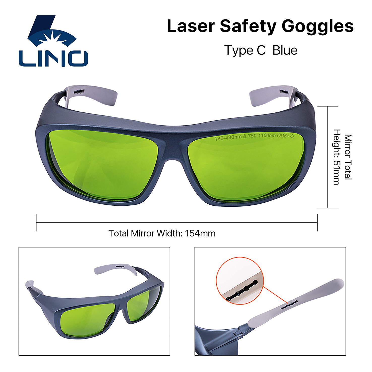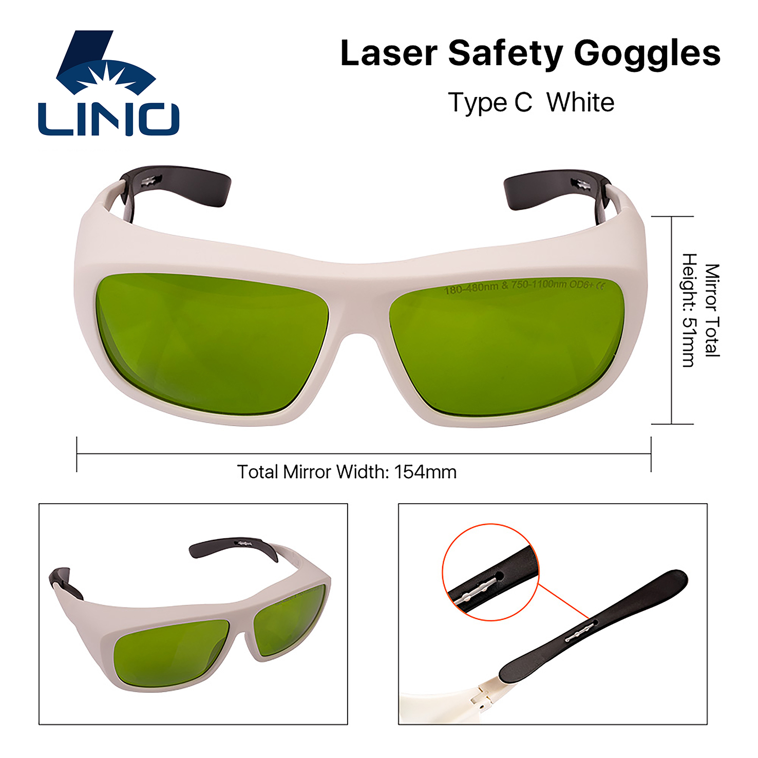 Lino Fiber Safety Goggles Laser Glasses 1800nm OD6+/OD8+ CE Eye Protection