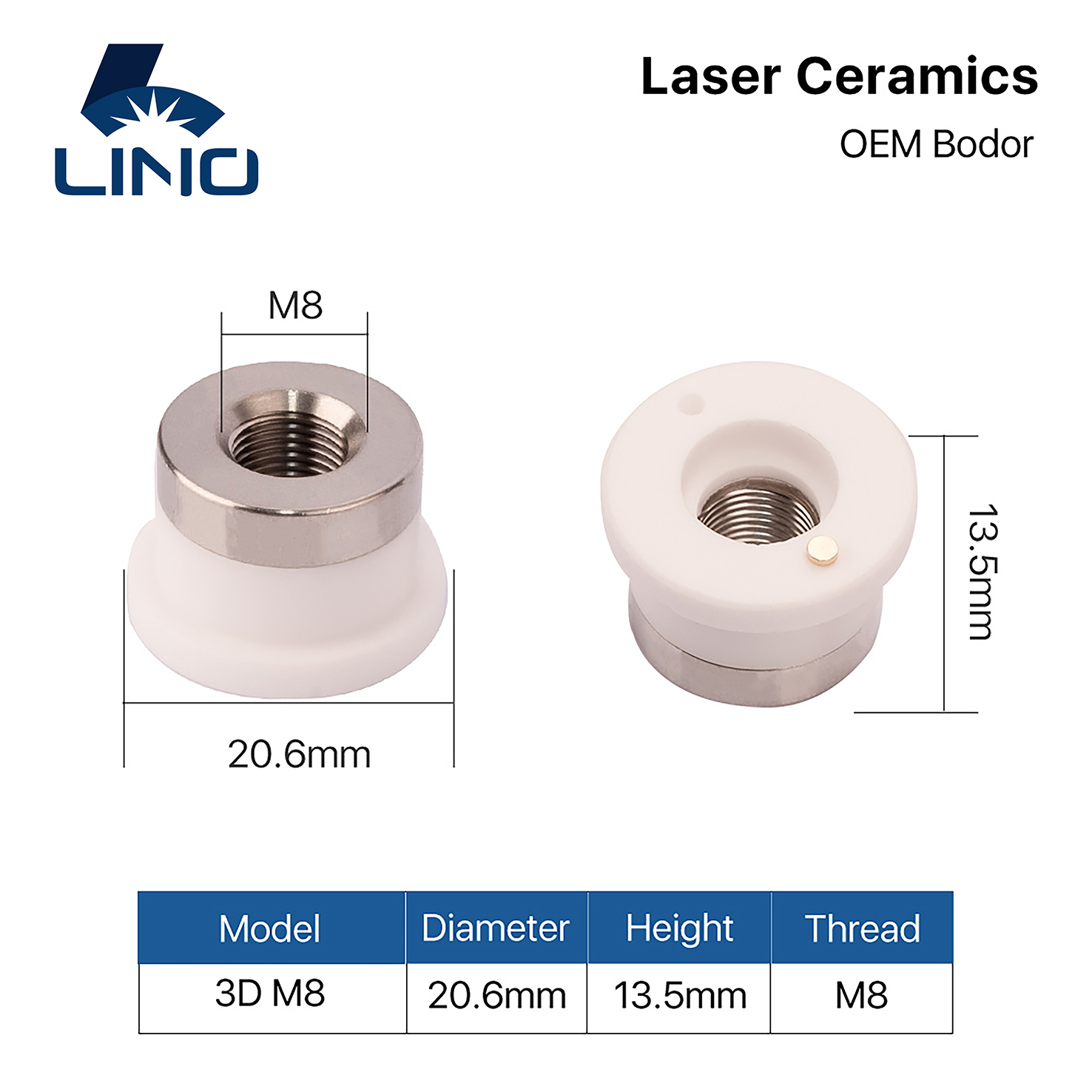 Lino OEM Bodor 3D Ceramic Ring 20.6 M8 for 3D/Tube Cutting Head