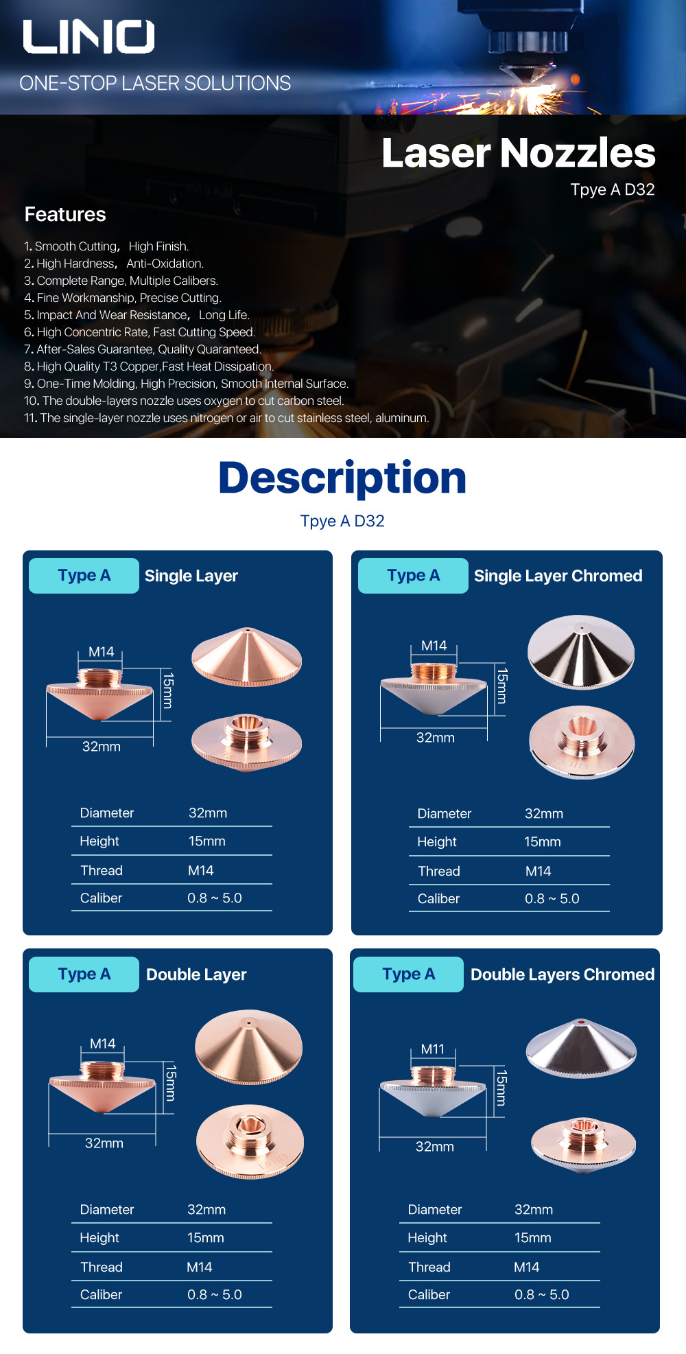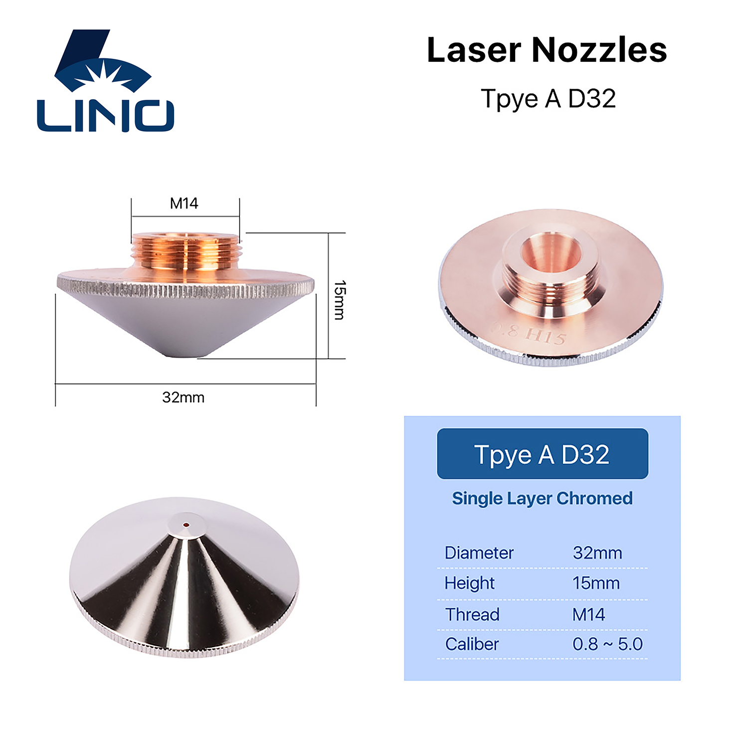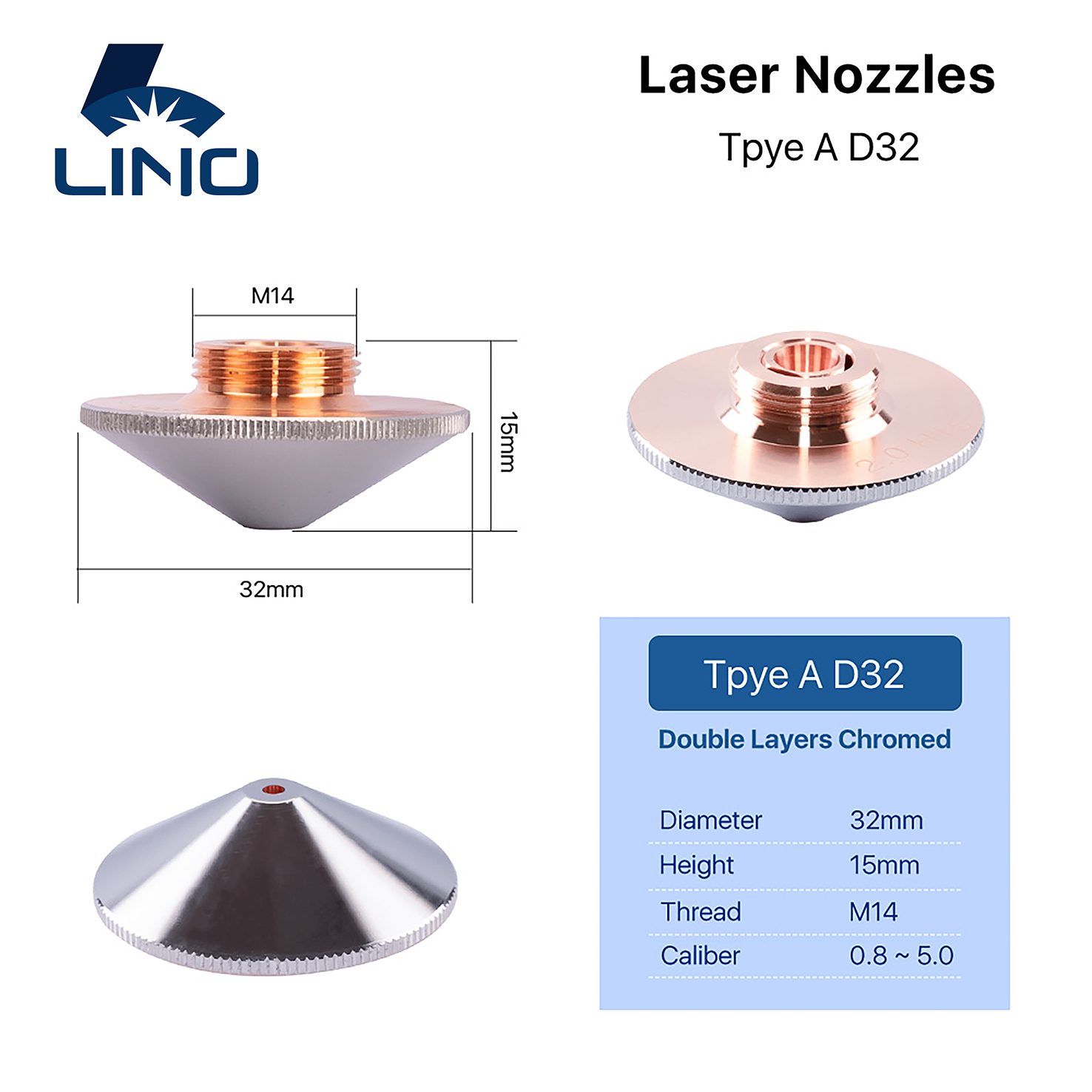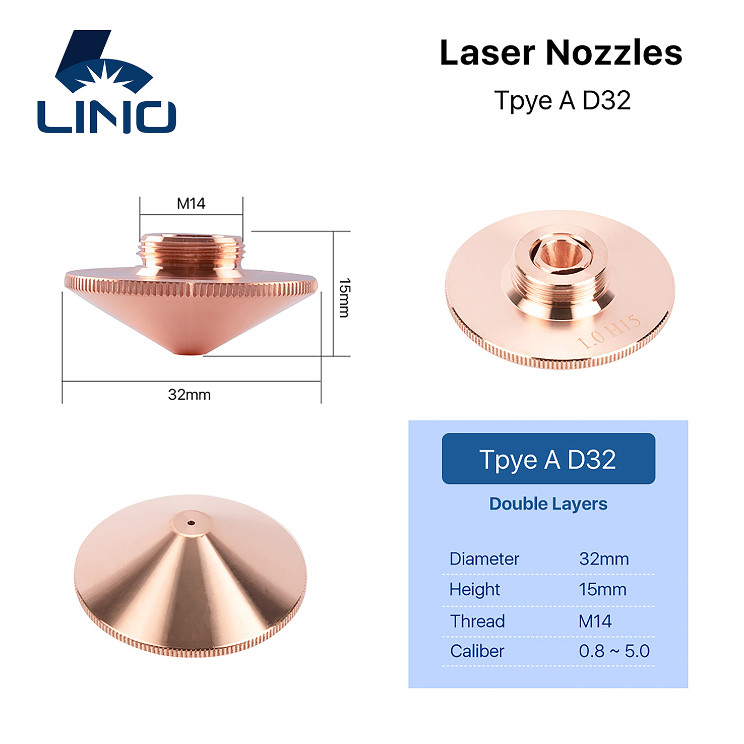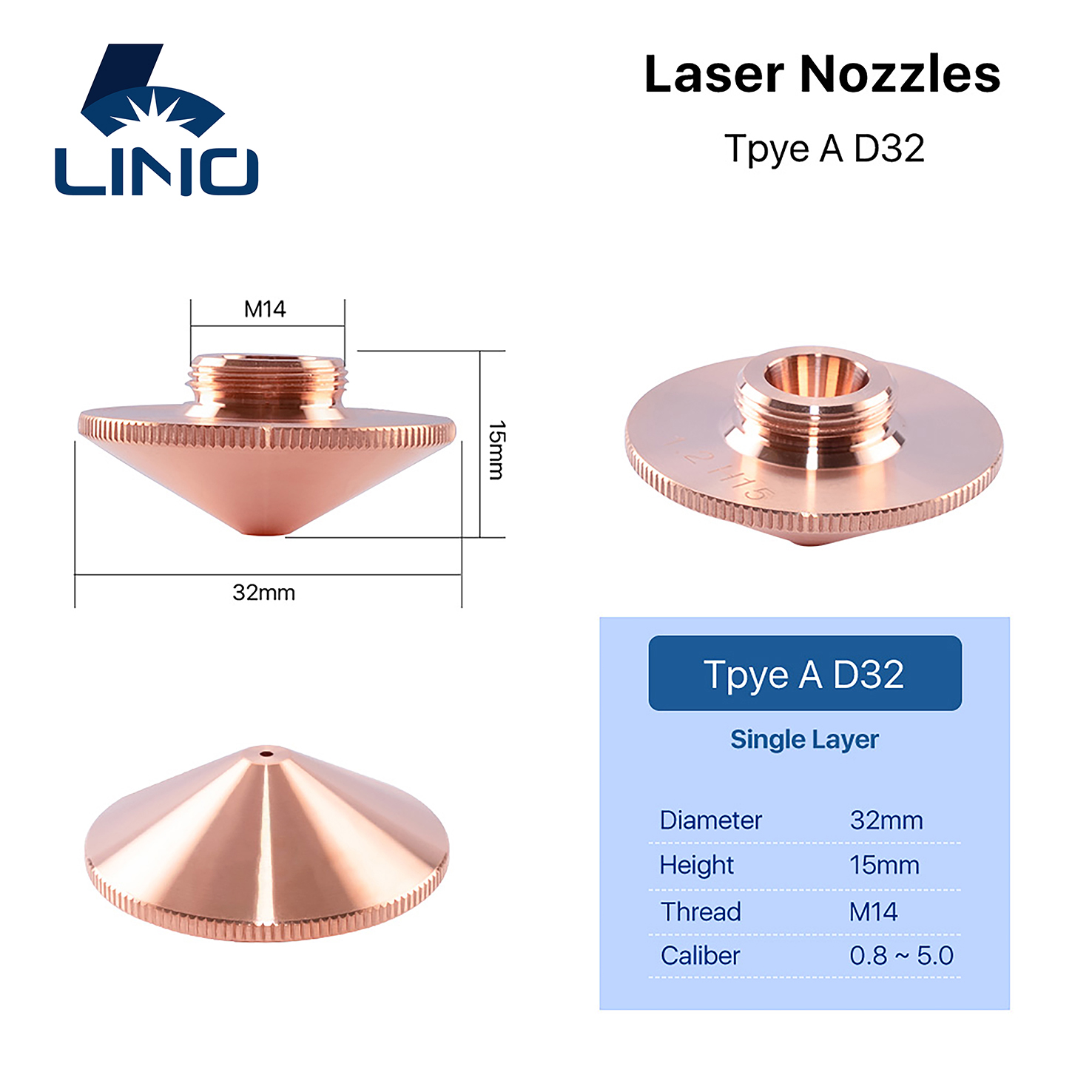 Lino OEM Laser Cutting Nozzles D32 M14 Normal Type Single/Double Layers for Laser Cutting Head