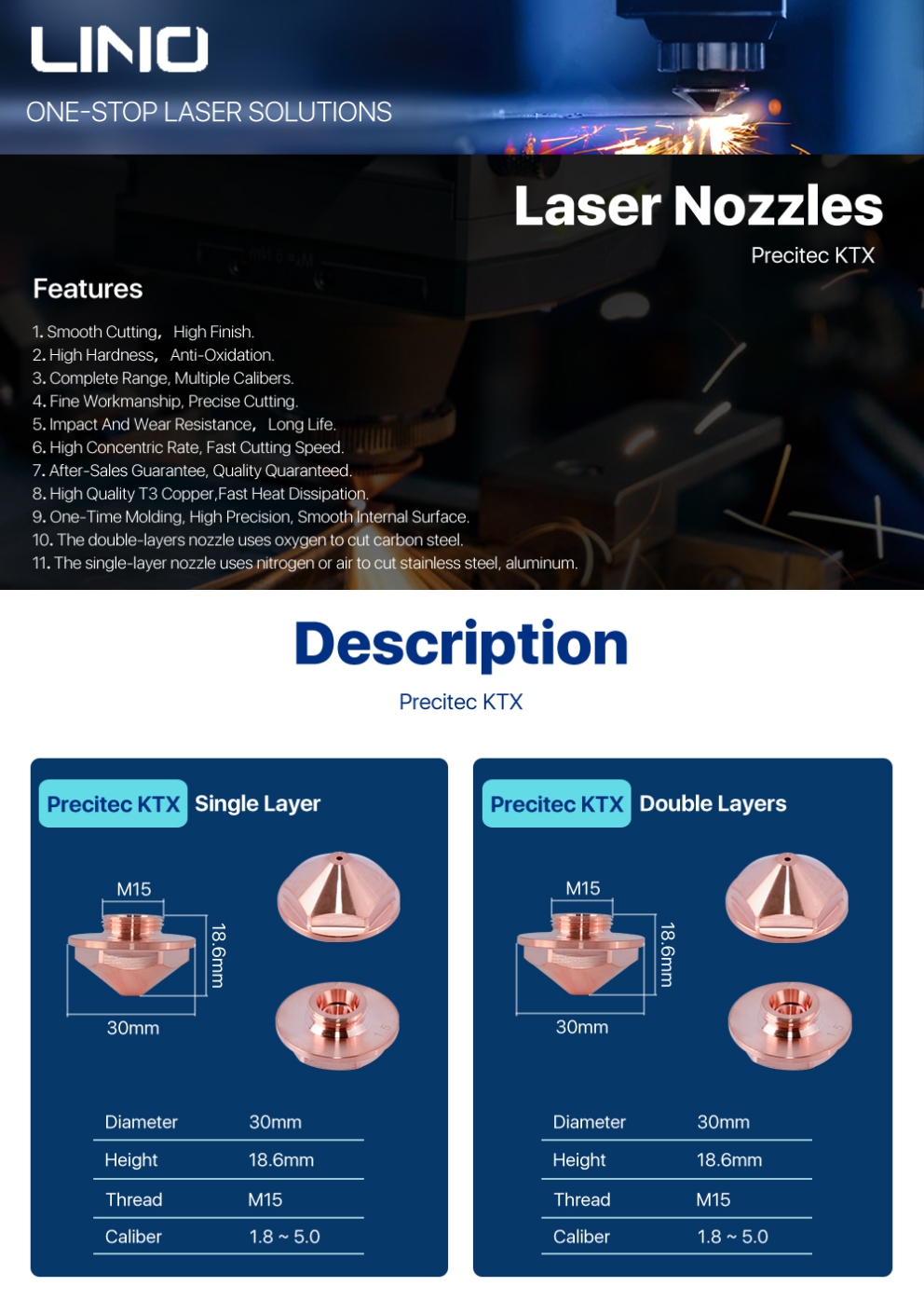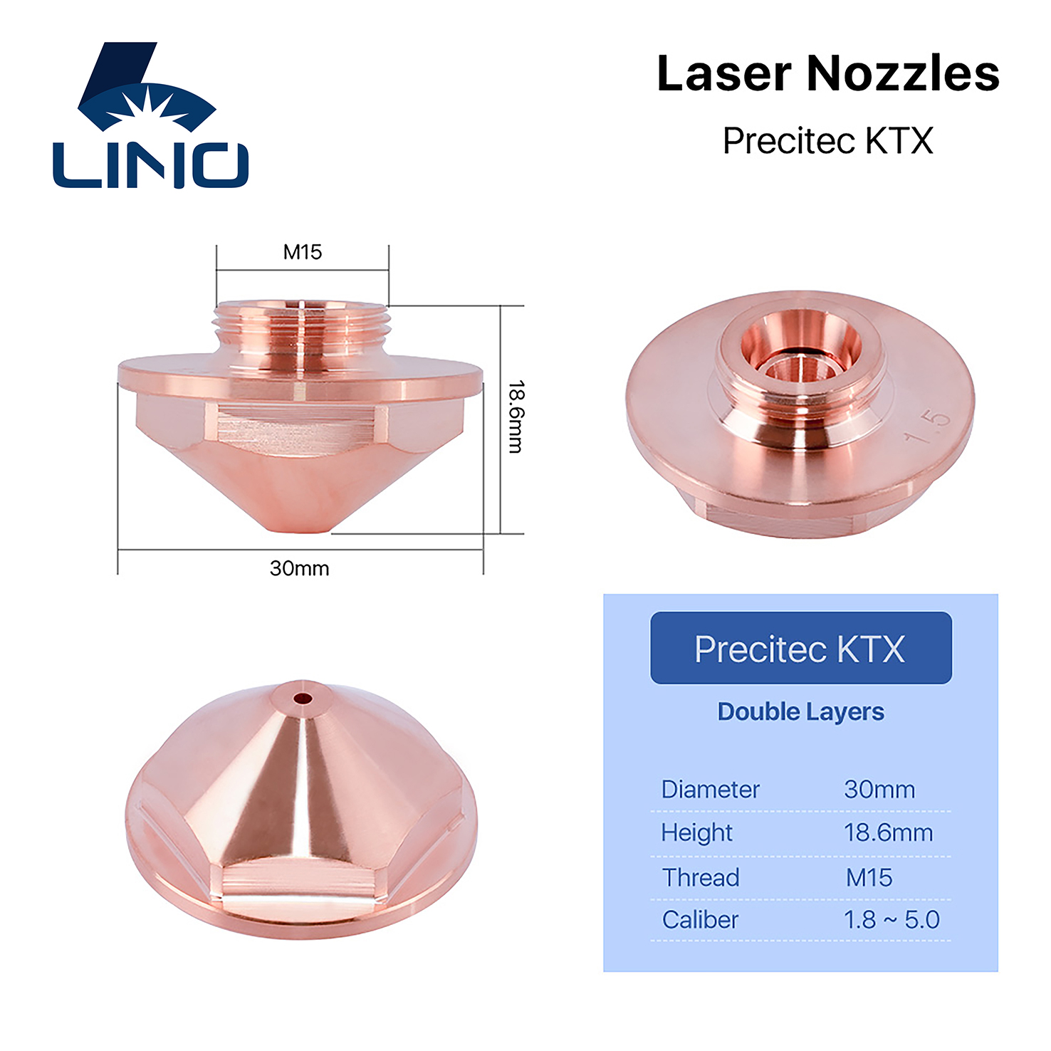 Lino OEM Laser Nozzle Single Double Layer KTX D30 H18.6 M15 P0595-94263 for Precitec Procutter